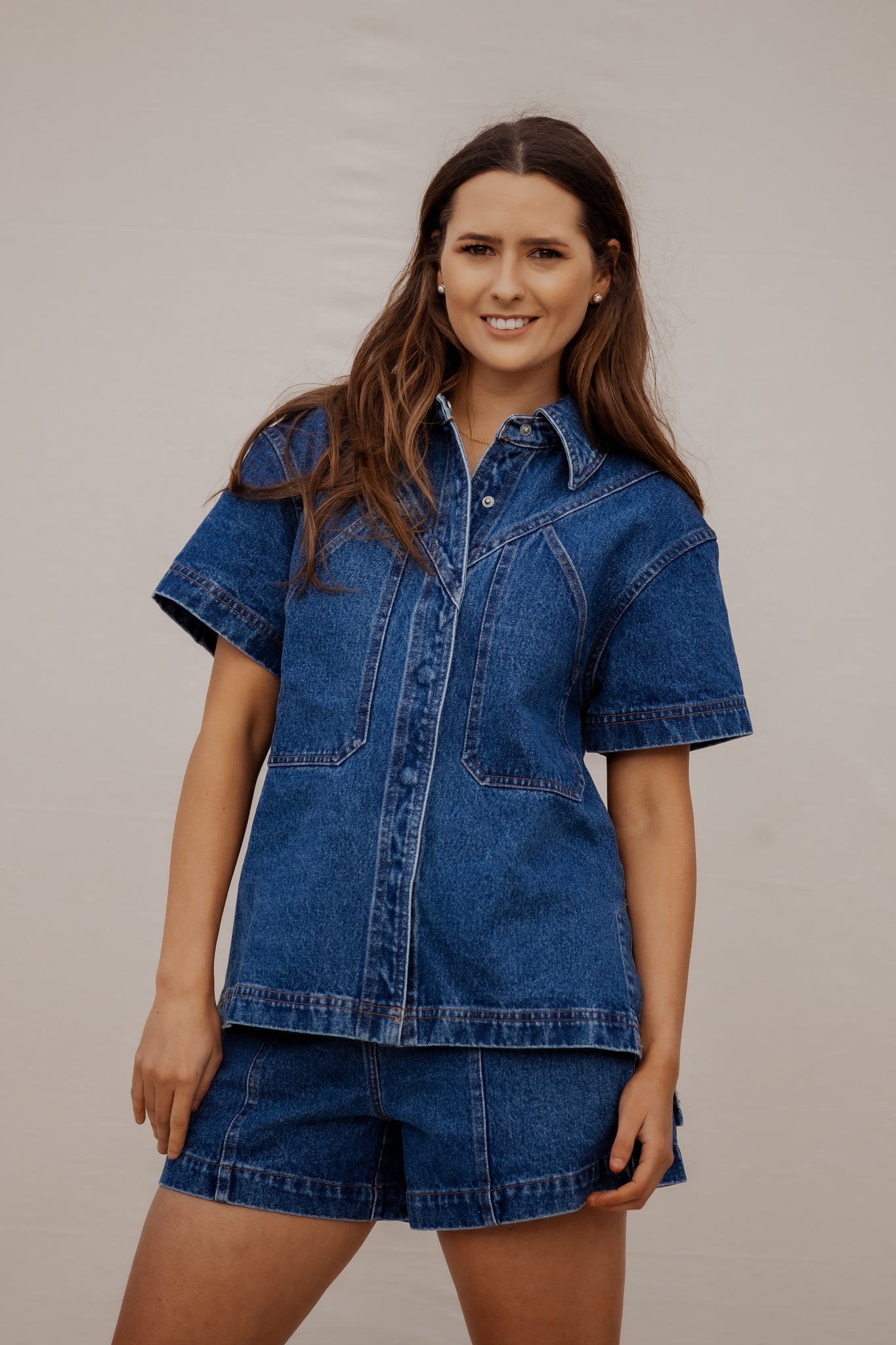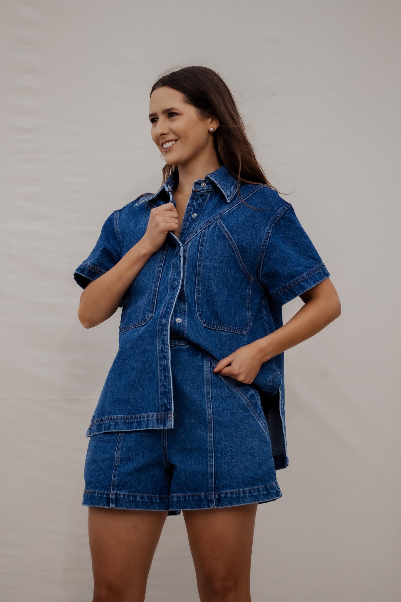 Say hello to the Darla Set, your ultimate summer staple. This denim short and shirt duo is designed with timeless details that make it effortlessly stylish while still standing out from the crowd. Wear it together for an iconic, coordinated look, or mix and match each piece with your wardrobe favorites to create endless outfits. Perfect for beach days, weekend markets, or sunset drinks, the Darla Set is the go-to look you’ll be living in all season long.