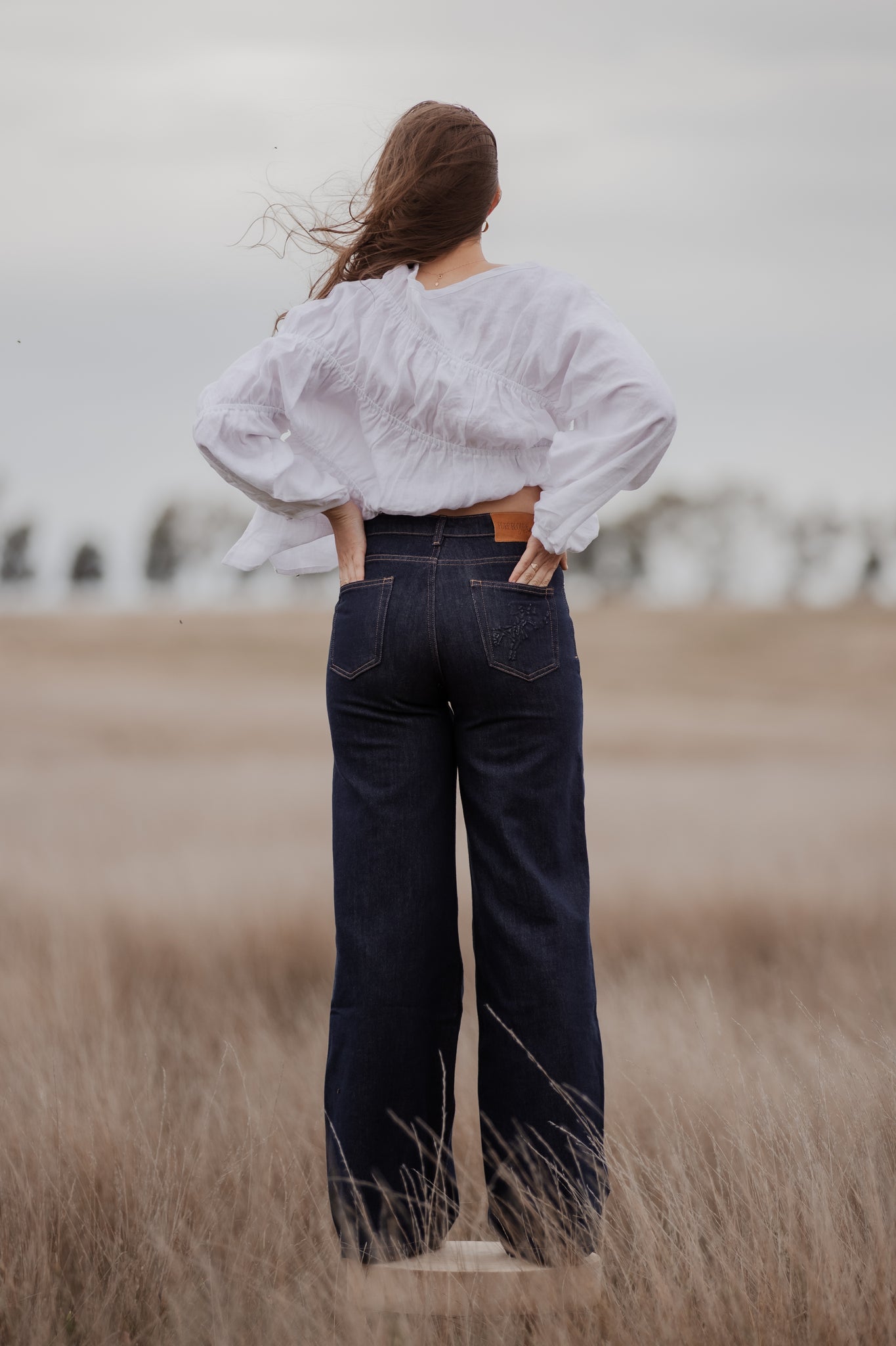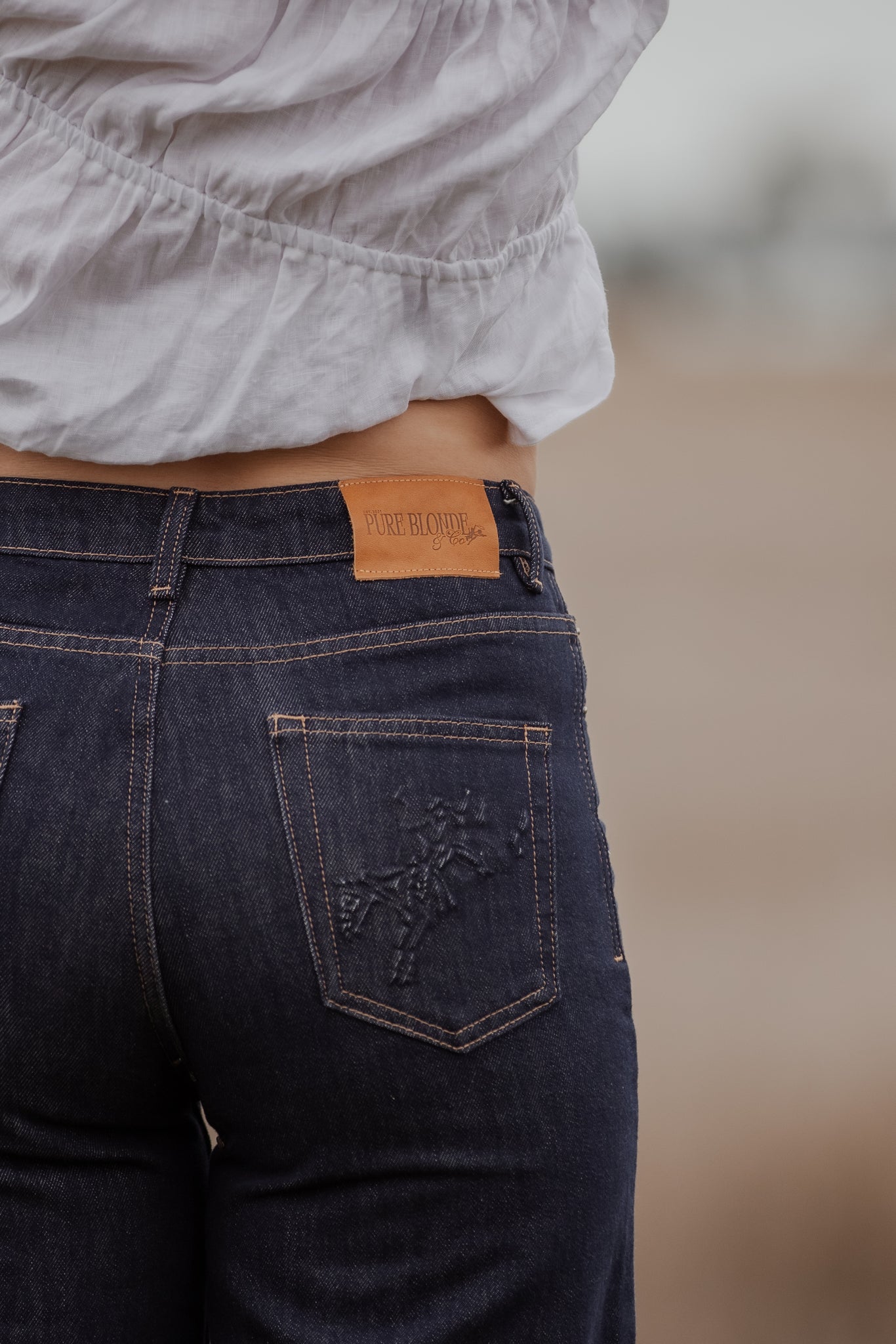 Cut from structured, high-quality denim, they contour beautifully through the waist and hips before falling into that classic straight leg. The rich dark wash pairs perfectly with crisp shirts or your favourite statement top.