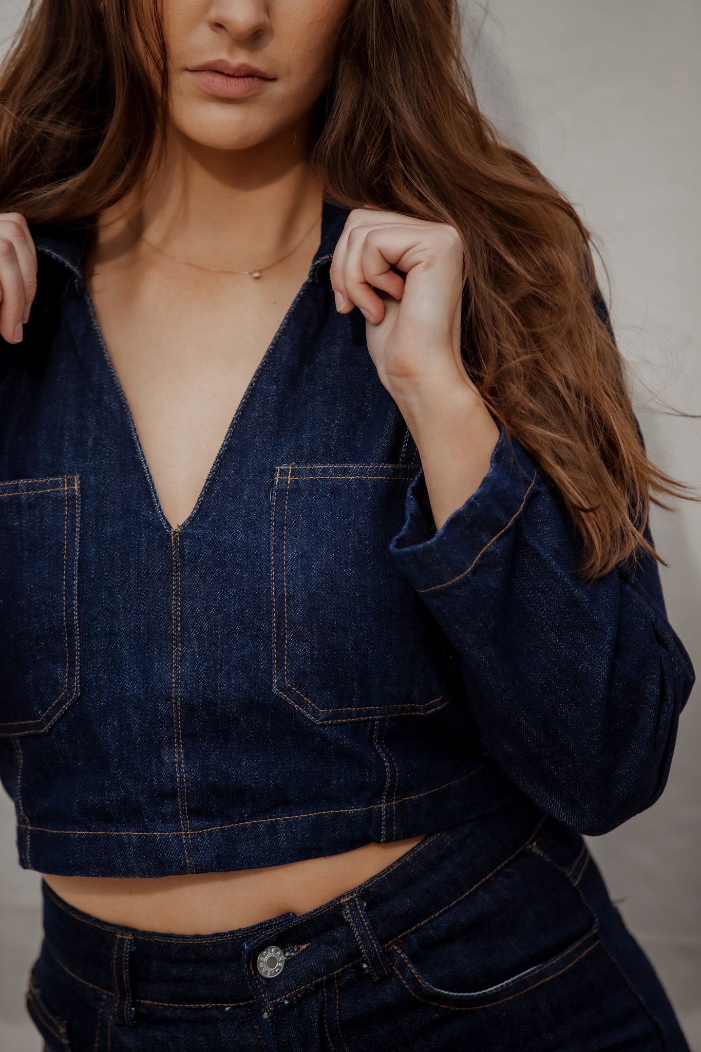 The Holly Shirt in dark denim is a timeless essentia you need this spring. With its cropped cut, structured seam details, and flattering V-neckline, it’s designed to bring effortless style to your wardrobe. Crafted from soft, durable denim, this piece is as comfortable as it is versatile. Pair it with The Bridie Jeans for the ultimate co-ord look, or style it with skirts and trousers to add a touch of modern denim edge.
