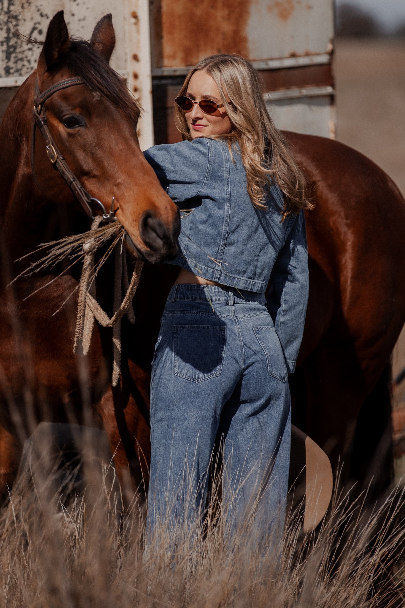 The Minnie is your new must-have denim blouse! Cropped with long sleeves, a flattering V-neckline, and seam detailing that gives it a timeless yet modern edge. Made from soft denim, it’s as comfortable as it is stylish. Designed to pair perfectly with The Kirst Jeans, The Minnie Shirt also mixes effortlessly with skirts, trousers, or shorts for endless outfit options.